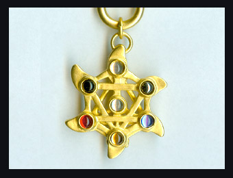 Medium pewter/24kt matte gold plated 3D hinged Tree of Life Star amulet set with 13 Swarovski crystals on front and back.