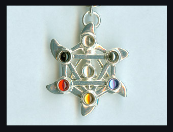 Medium pewter/silver plated 3D hinged Tree of Life Star amulet set with 13 13 Swarovski crystals on front and back.