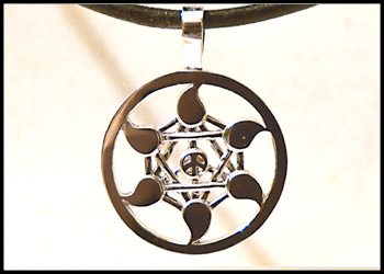 Sterling Circle of Peace Star pendant on adjustable 16 polished black leather and sterling necklace.
