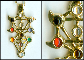 Small pewter/18kt brilliant gold plated 3D hinged Tree of Life Star amulet set with 13 Swarovski crystals on front and back.