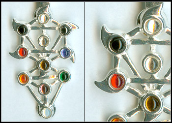Small pewter/silver plated 3D hinged Tree of Life Star amulet set with 13 13 Swarovski crystals on front and back.