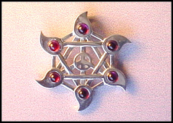 Small sterling Peace Star set with 6 semi-precious, 3mm stones on front. |