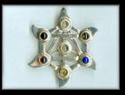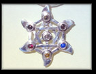 Large sterling ãHealing Star 3D amulet set with 14 semi-precious gemstones on both the front and back of the piece. |